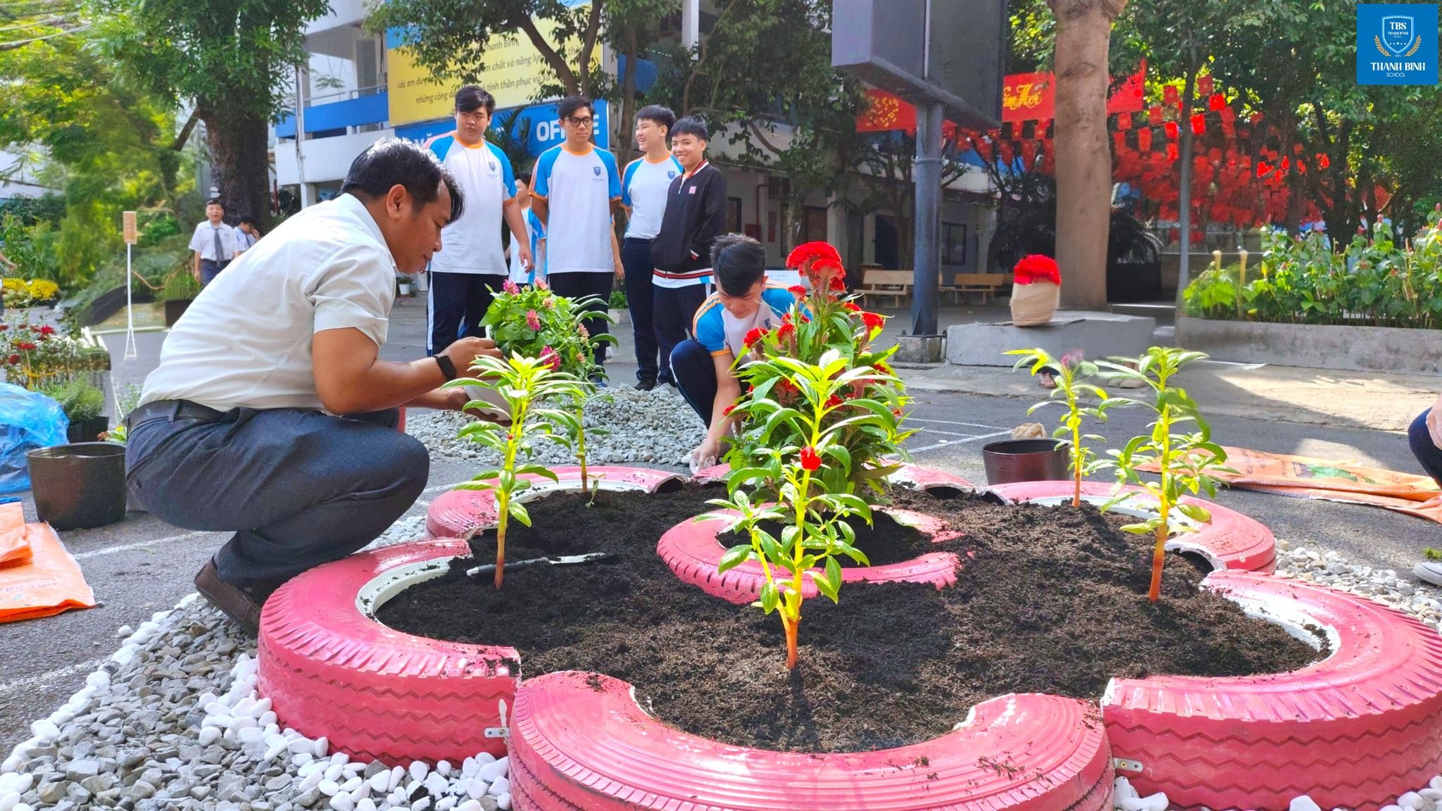 Những ngày cuối năm vừa chạm ngõ, Thanh Bình đã bắt đầu khoác lên mình sắc xuân rực rỡ. Từ lớp học đến hành lang, từ bảng tin đến khu nhà ăn, đâu đâu cũng thấy sự tất bật, rộn ràng của thầy cô và học sinh.