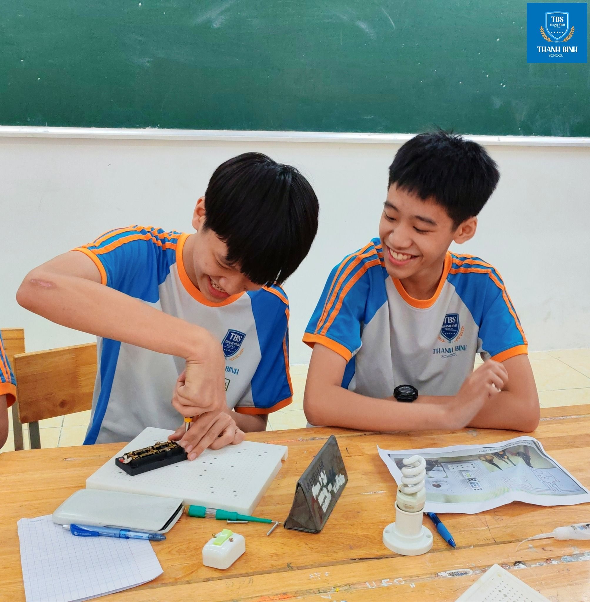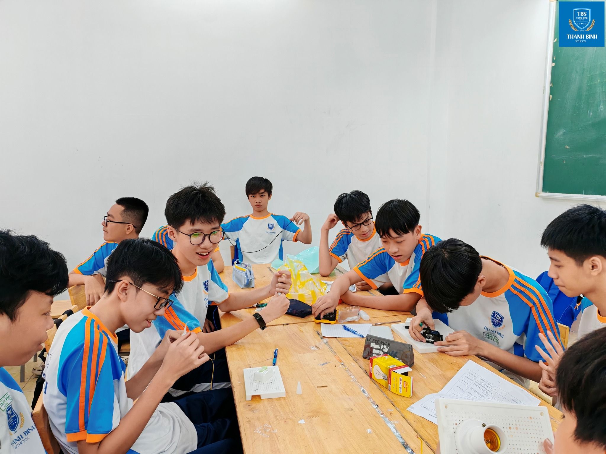 Ở phần thực hành, tinh thần kỷ luật và an toàn lao động được đặt lên hàng đầu. Mỗi thao tác lắp ráp không chỉ đòi hỏi sự chính xác, mà còn phản ánh thái độ học tập nghiêm túc – điều mà Thanh Bình luôn hướng tới trong quá trình giáo dục học sinh TBS: học đi đôi với làm, hiểu để vận dụng, rèn kỹ năng gắn với giá trị lâu dài.