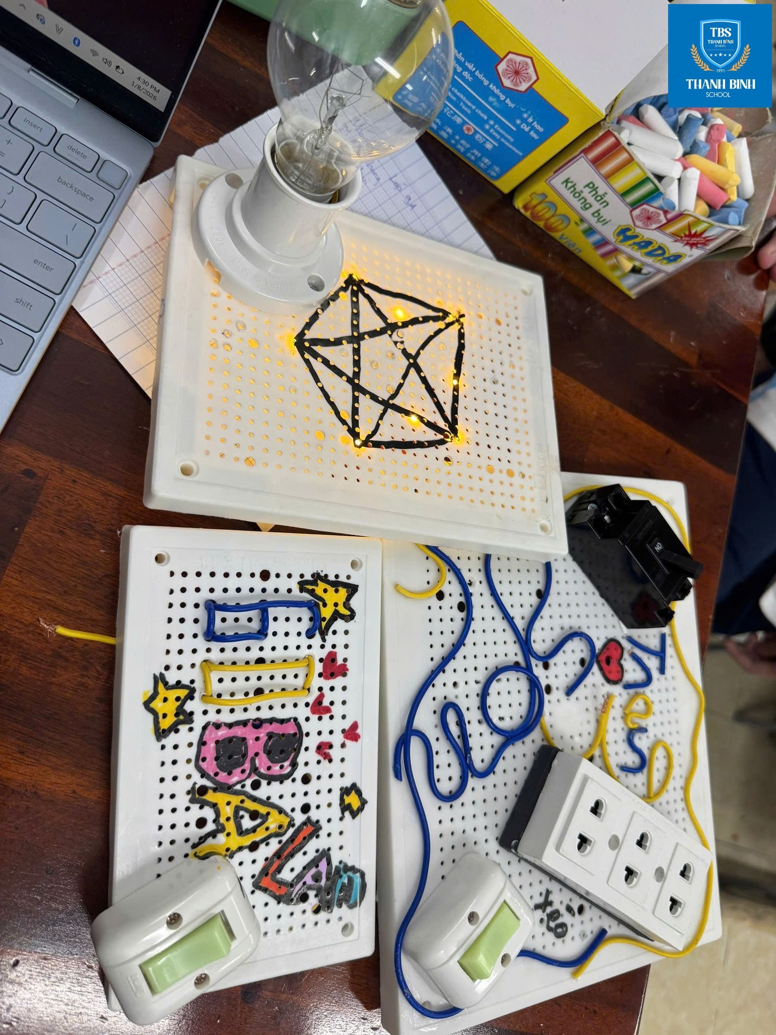 Trong tiết học Công nghệ tại Thanh Bình, các TBSers đã có cơ hội thuyết trình về những nghề nghiệp gắn liền với lĩnh vực điện, đồng thời trực tiếp thực hành thiết kế, lắp ráp các thiết bị điện theo đúng quy trình kỹ thuật. Đây không chỉ là một giờ học chuyên môn, mà còn là không gian để học sinh TBS kết nối kiến thức với thực tiễn một cách rõ ràng và nghiêm túc.